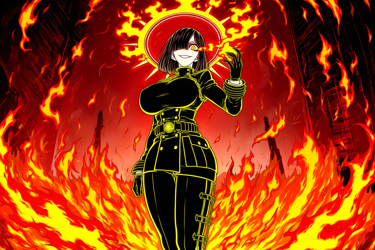 それは焦熱地獄そのものが地上に顕現するということ。地獄の炎が渦巻き、すさまじい破壊活動を起こす。対象となるのは彼女の正義感を刺激した組織。ただし、無関係な犠牲者も大量に生み出す。建物や一区画を焼き払うため、たいへんな危険人物だ。