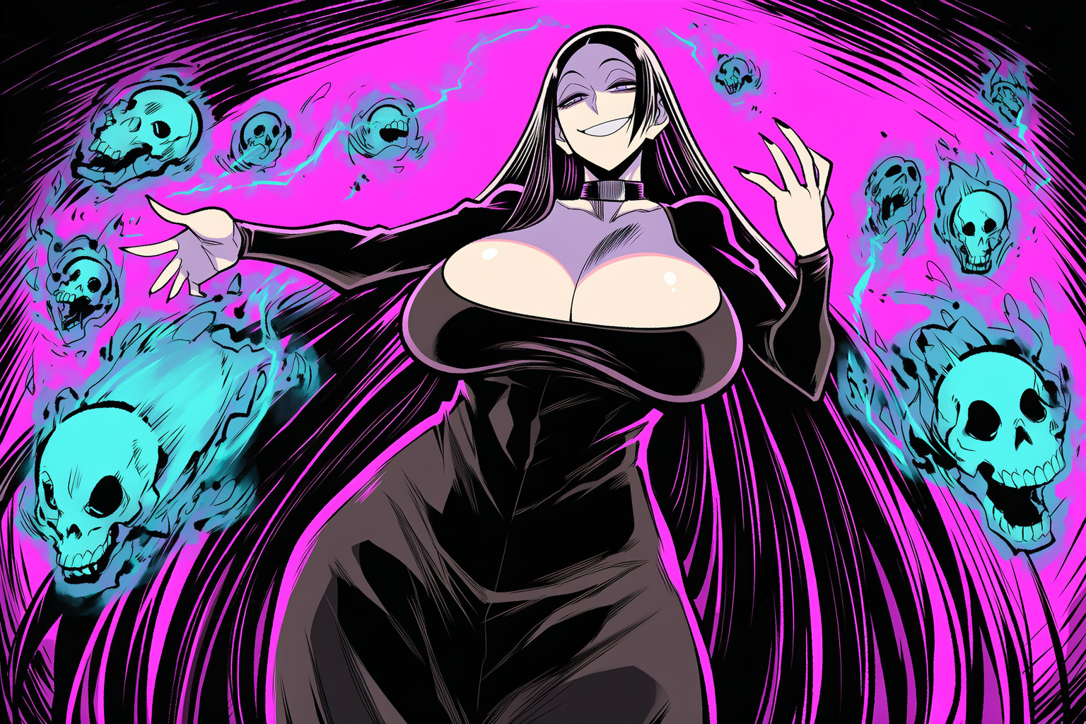 彼女の犠牲者が増えるほどに、髑髏と亡霊は増えていく。この異界は幾百年をかけて溜め込まれた、亡霊使役用の納骨堂。その髑髏は今も増え続けている。